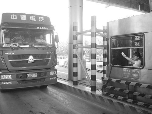 記者到前面停下車,走到了發(fā)卡崗?fù)?。這時(shí),從107國(guó)道下來(lái)長(zhǎng)長(zhǎng)一隊(duì)大車。記者注意到,這些大車似乎很有經(jīng)驗(yàn),下來(lái)后每輛車都緩緩行駛,在經(jīng)過(guò)發(fā)卡崗?fù)さ臅r(shí)候,沒(méi)有一輛停車,四分鐘左右,這20多輛車就全部過(guò)去了。